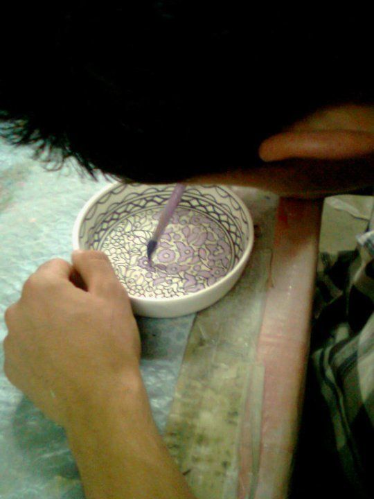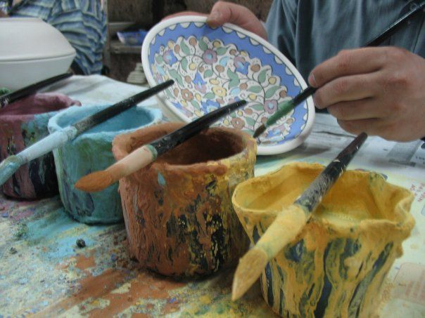 The artists first work the clay on a spinning wheel. The process can take anywhere from ten minutes for an item like a bowl, to more than three hours for something as large as a jug. The molded clay is then set outside to dry, where these bowls, large serving dishes, and jugs are separated according to their kind. Once dry, the pottery is taken to the kiln. These kilns are themselves replicas of the ovens used in the ancient times. Once the ceramic wares have been fired and glazed, the decorative stage begins and designs are dependent upon the region where the pottery is produced epitomising thousands of years of civilisations. The pottery is then fired again, where the paint used for decorating the pots, jugs, bowls, mugs, and tagines settles. Each design and pattern tells a story about the influences, events and culture of that area.